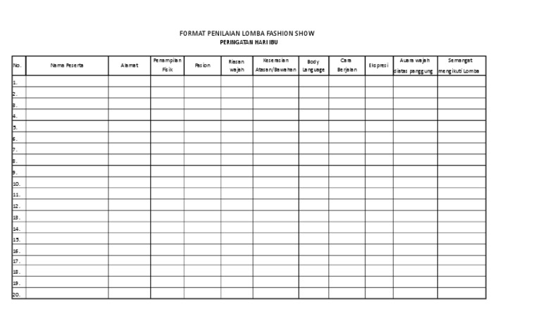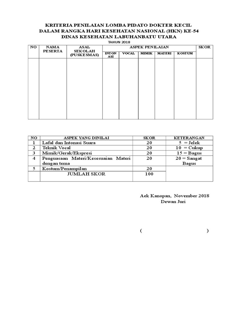 Https Edoc Pub Download Format Penilaian Lomba Pdf Free Html from Form penilaian ini dibuat dalam. Kesesuaian tema, judul dan isi pidato. 6 kriteria tersebut umumnya selalu dipakai dalam penilaian dalam lomba pidato. Kriteria penilaian lomba membaca/bertutur cerita untuk bertutur cerita, biasanya si dewan juri tidak melepaskan penilaia. Lomba praktek kesempurnaan gerakan dan bacaan shalat fardhu, sebagai berikut: Apa saja kriteria penilaian di lomba burung berkicau? The best format penilaian juri lomba paduan suara. Terdapat banyak kriteria dalam penilaian aquascape, diantaranya: